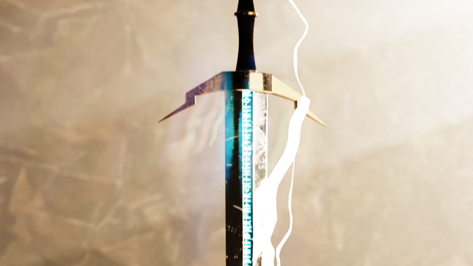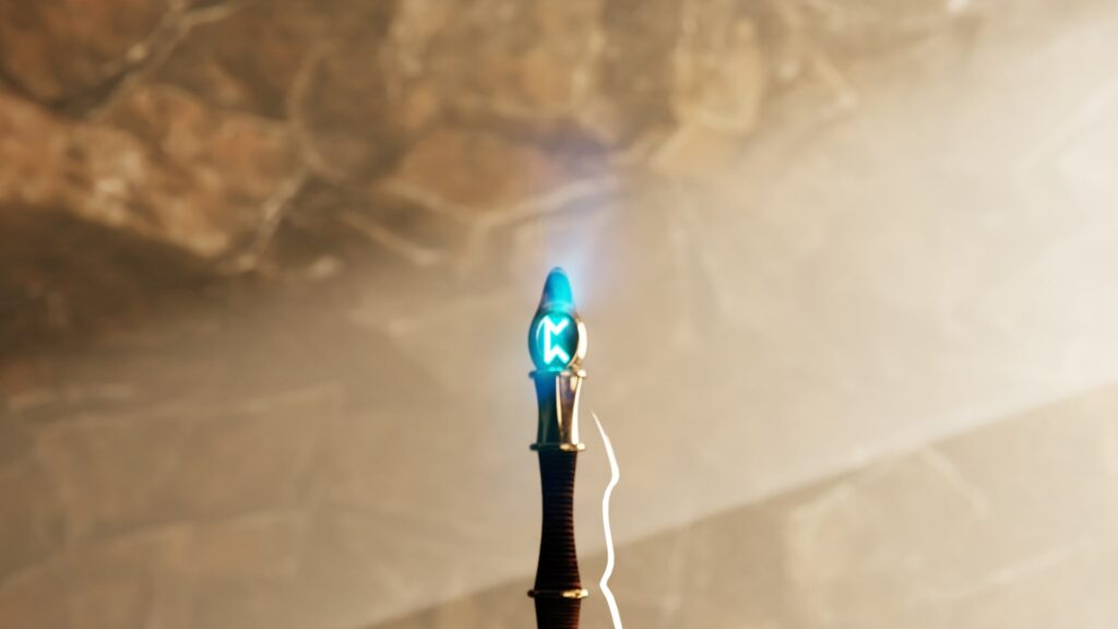 Some elements like the cave, floor and sword lightning have been created with Geometry Nodes. The sword is modeled by hand, the rune texture on the sword was kindly provided by the tutorial.